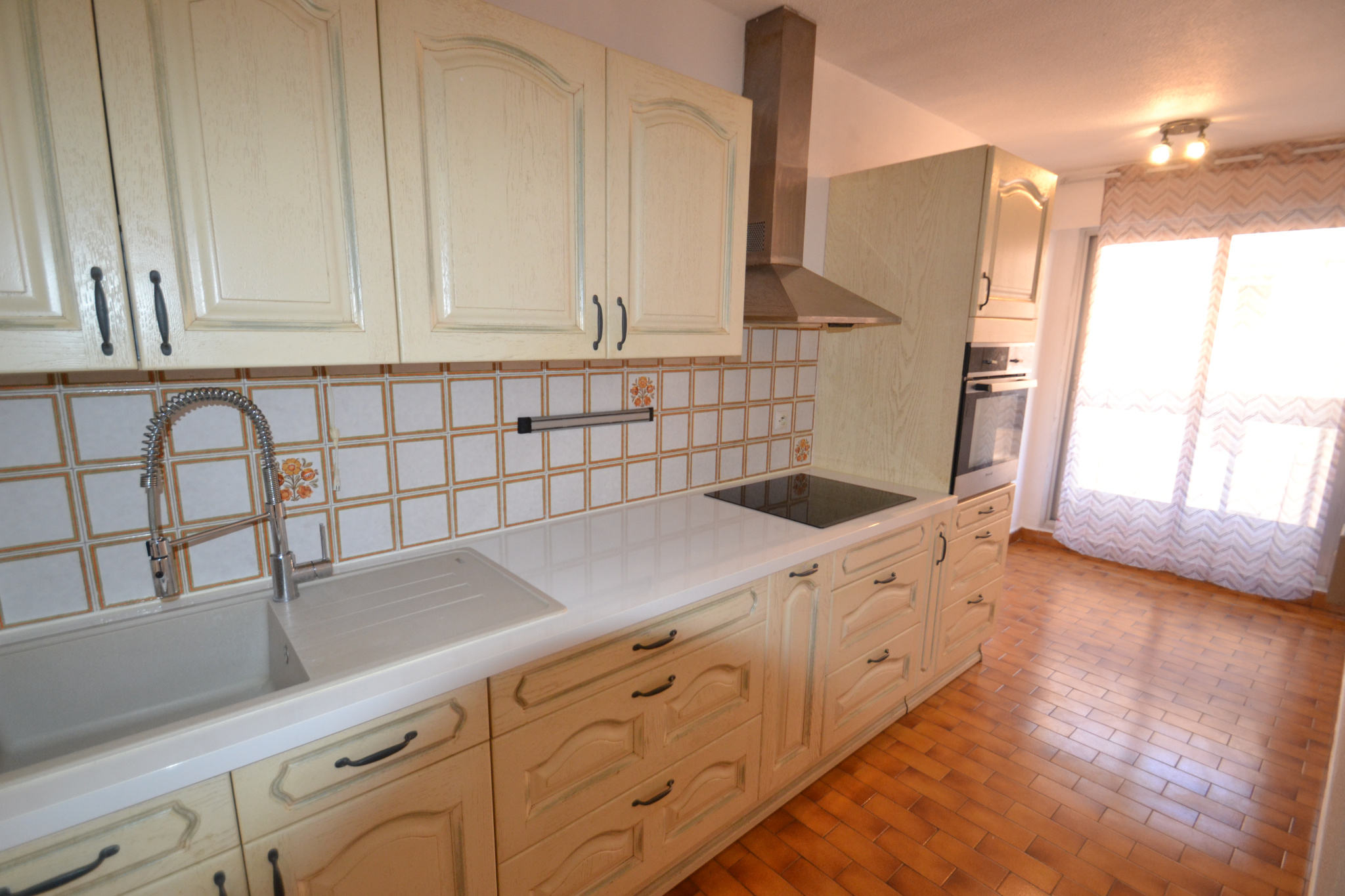 ANTIBES Centre, A LOUER VIDE A L'ANNEE, 3 pièces de 62,59 m2, traversant, en bon état, peinture neuve, cuisine indépendante aménagée, WC indépendant, nombreux rangements, idéalement situé entre Juan les Pins et Antibes, accès à pied à toutes les commodités, écoles, plages, commerces ainsi que des gares et bus. Garage sous-sol. Loyer charges comprises: 1250 € (eau froide et chaude, entretetien de l'immeuble).